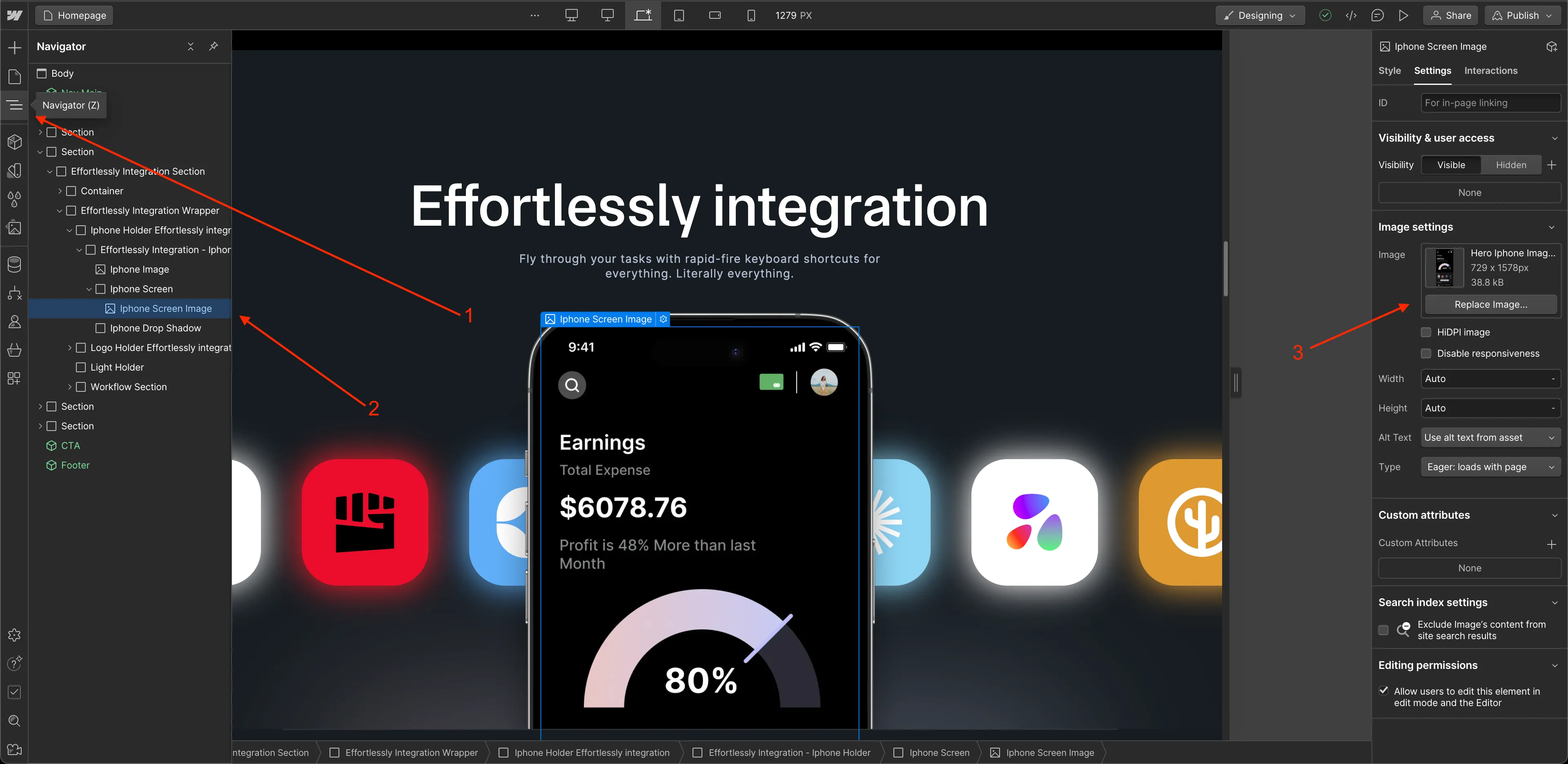 To make the font smoothing we have added this code below in the project settings "Head Code" section.